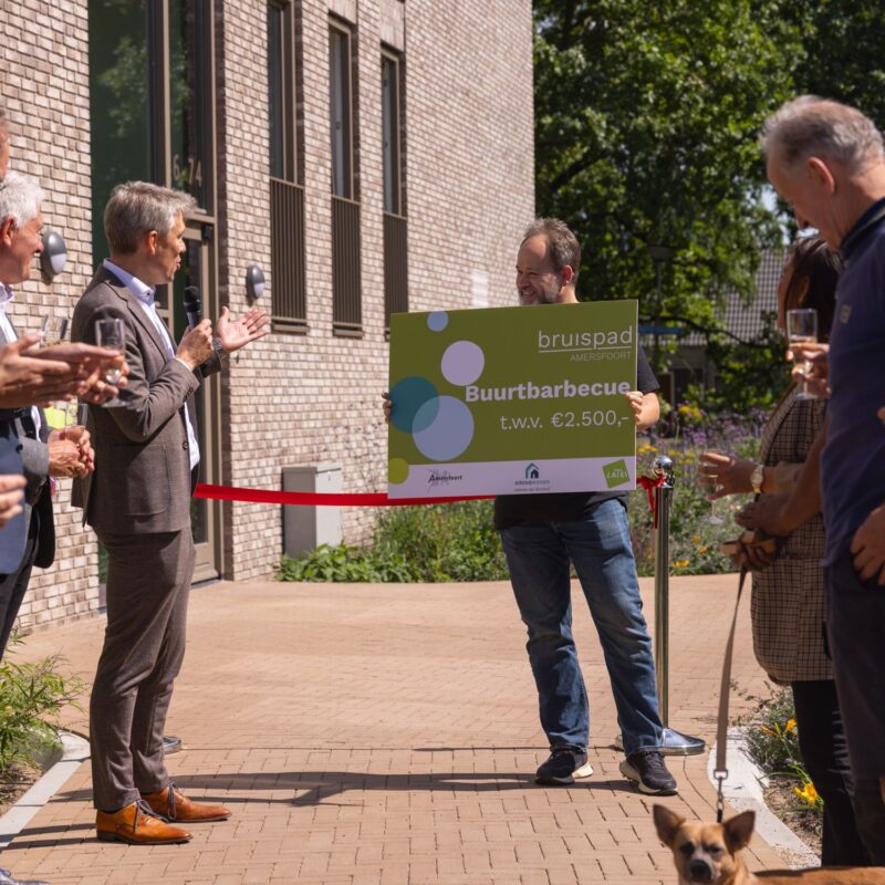 Wij vinden het belangrijk dat de bewoners elkaar ontmoeten en leren kennen. Om dat te stimuleren kregen de bewoners een cheque overhandigd voor een buurtbarbecue.