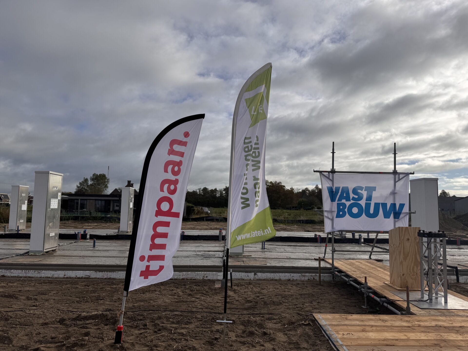 Op woensdag 16 oktober is op feestelijke wijze de start van de bouw gevierd van 14 sociale huurwoningen in project Krekenlanden in de Gemeente Nieuwkoop. Deze woningen worden gerealiseerd volgens het SMART 2.0-concept van Timpaan en Vastbouw. Dit is een slimme en duurzame manier van bouwen die bijdraagt aan betaalbaar wonen én een toekomstbestendige wijk.