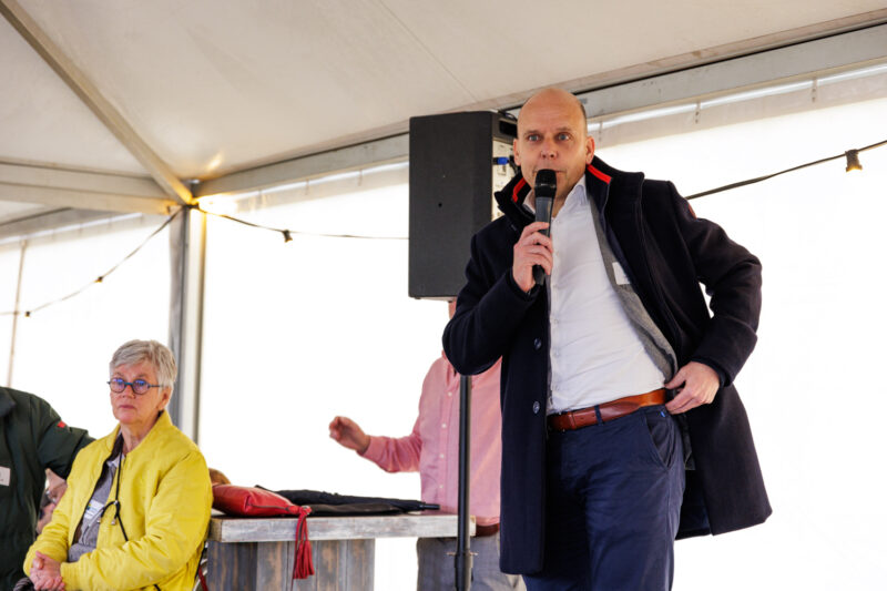 De huurders van de sociale huurwoningen zijn nog niet aanwezig op het startbouwfeest. Die zijn nu nog niet bekend, legt Myron Jacobs van woningcorporatie Omthuis uit. ‘Wij wijzen de huurwoningen vanaf vier maanden voor de oplevering toe aan huurders.’ Ook voor Omthuis is Mastenbroek 2 een bijzonder project. ‘Wij zijn er al sinds 2006 mee bezig. Dus het is heel mooi om hier te staan. Het moment is eindelijk daar. Voor ons is dit een klein maar uitdagend project, met onze eerste nul-op-de-meterwoningen binnen een wijk met een mooie kwaliteit. Ook wij zijn daar trots op.’