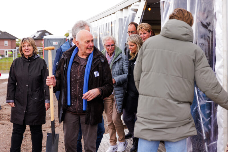 Het is vandaag ook een feest van ontmoeting. Nieuwe buren herkennen elkaar door de stickers met de bouwnummers erop en maken alvast kennis. Antoni benadrukt dat deze middag daar ook voor is bedoeld. ‘De start van de bouw is ook de start van de kennismaking met buurtgenoten. Leer elkaar alvast gezellig kennen onder het genot van een hapje en een drankje.’