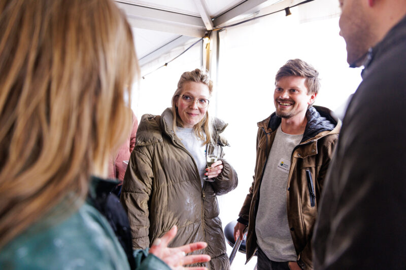 Die gelukswens neemt het jonge stel Bas (35) en Myrthe (34) ter harte. Met hun pasgeboren baby Maud zijn ze naar het startbouwfeest gekomen om te proosten met andere toekomstige bewoners van Mastenbroek 2. ‘Wij gaan wonen in één van de twee hoekhuizen van de rijwoningen’, vertelt Bas. ‘We zochten een wat rustigere omgeving. Ik kom uit de stad, zij uit een gehucht. Het dorp is een mooie middenweg. En de huizen zijn bijzonder, echt anders dan andere projecten die we hebben bekeken. Met leuke accenten, daken die verschillen van kleur en een opzet die niet rechttoe rechtaan is. En ook nog eens nul-op-de-meter, dat is duurzaam en voordelig. Leuk om vandaag onze buren te ontmoeten en ons perceel even te zien. Het begint nu echt meer te leven, we hebben er heel veel zin in.’