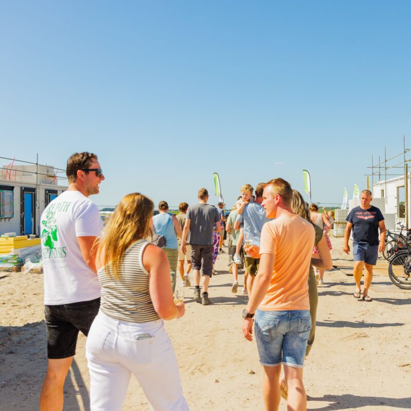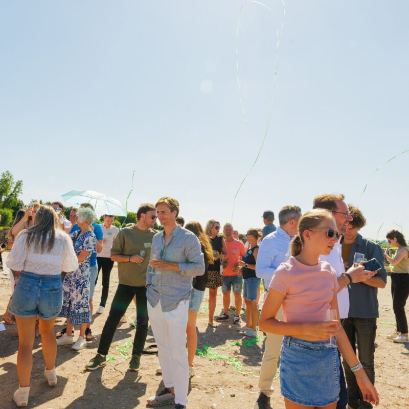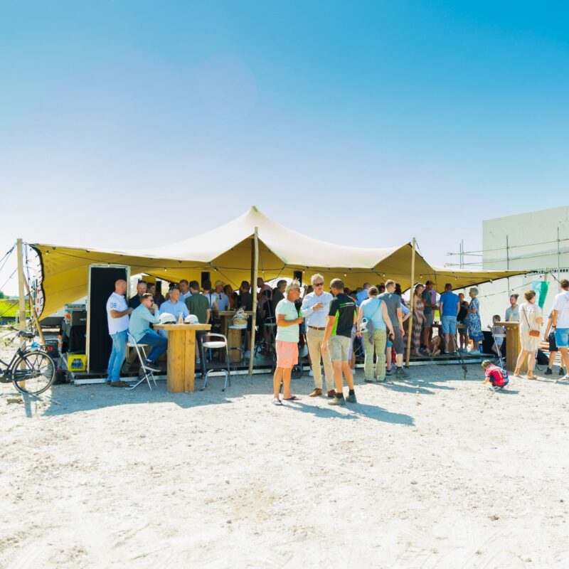 Onder een stralende zon sloegen drie toekomstige bewoners, aangemoedigd door wethouder Guus Elkhuizen van de gemeente Nieuwkoop, symbolisch de eerste palen voor Krekenlanden. Een feestelijk en belangrijk moment waarmee de bouw officieel van start ging, samen gevierd met kopers en projectbetrokkenen.