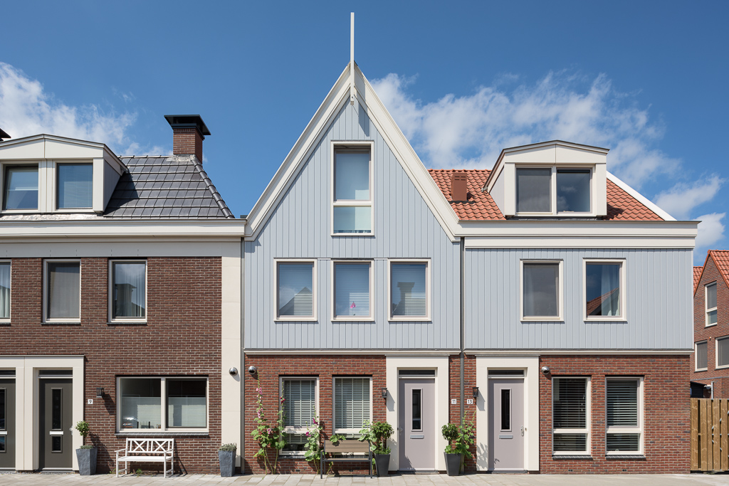 Door gebruik te maken van verschillende gevelhoogten en steensoorten ontstaat er een authentiek gezellig en kleurrijk straatbeeld.